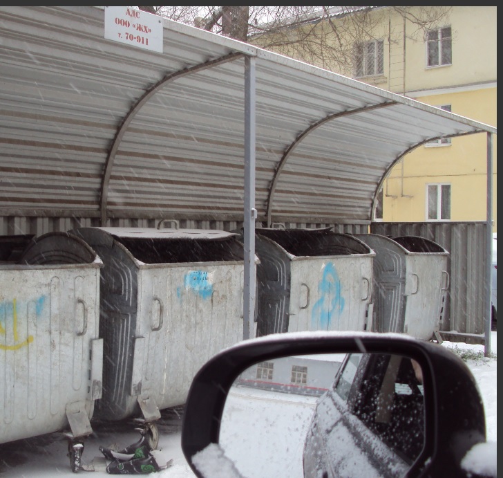 Несколько лет назад, когда заключал договор на вывоз мусора с вновь созданным управлением по обращению с отходами, их представитель сфотографировал наше сооружение и в дальнейшем рекомендовал всем УК и другим заинтересованным лицам изготовить места для сбора мусора по нашему проекту. В настоящее время можно довольно часто видеть в городе копии нашего сооружения...