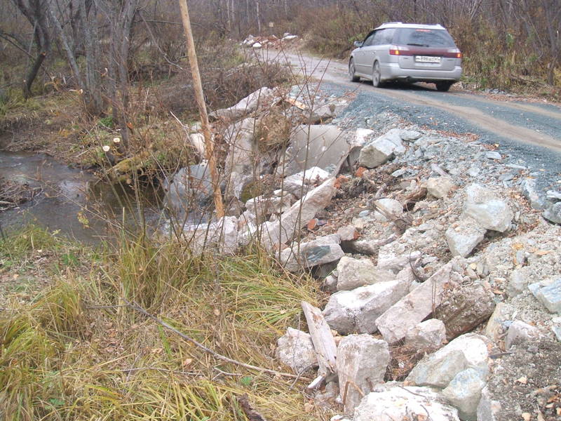 Переговорил по данному поводу с председателем ДНТ "Ручеек" Тисанюк В.С. и решили сделать это совместно, включая "обваловку" дороги крупным камнем-блоками, из-за большого весенннего половодья.