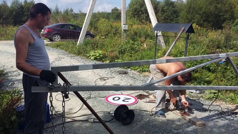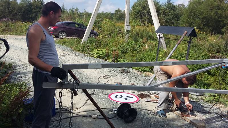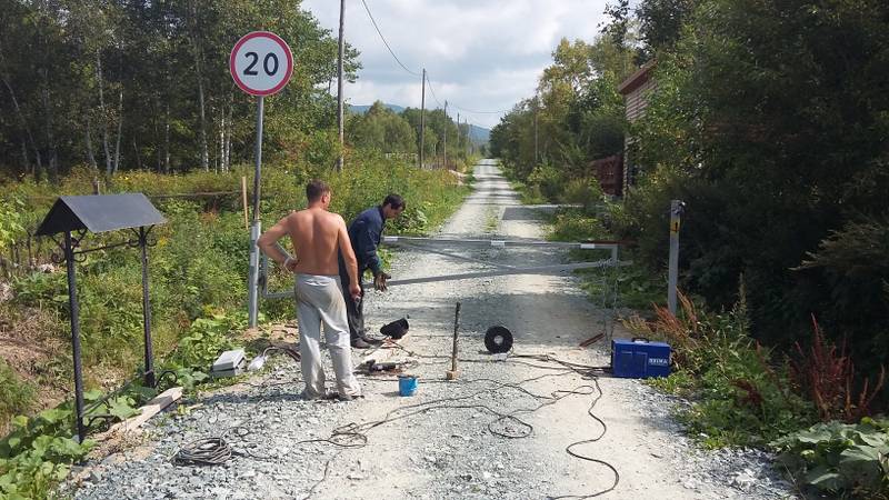 Текущий ремонт шлагбаума при въезде на ул. А.Абдулова